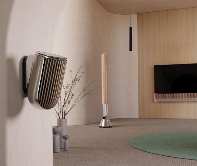 Для установки Beolab 8 предлагает несколько вариантов: настольная и напольная подставки скульптурного дизайна, а также элегантные настенное или потолочное крепление.